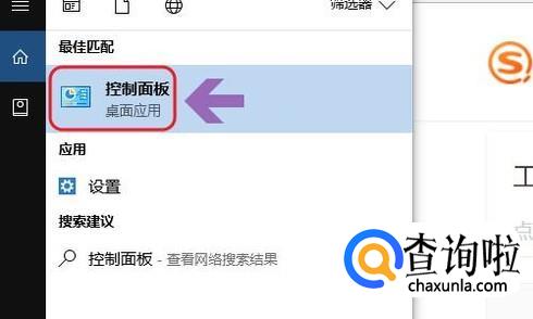点击电脑左下角的小娜,然后直接搜索“控制面板”,找到以后点击将其打开;