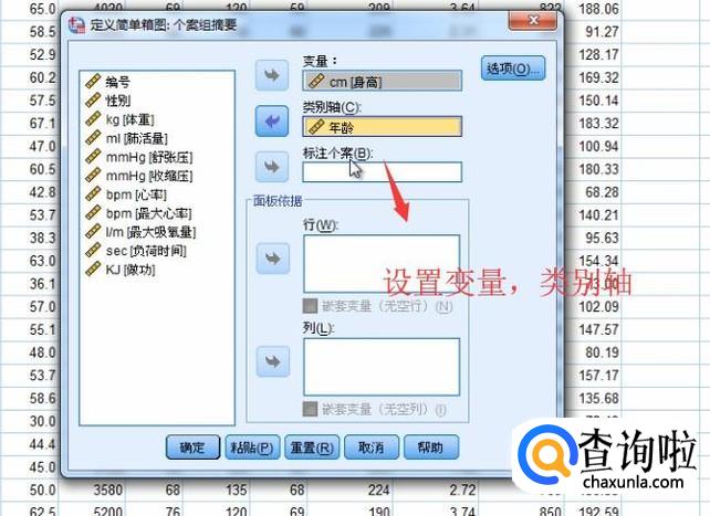 然后在弹出的界面中我们设置变量和类别轴,如下图所示