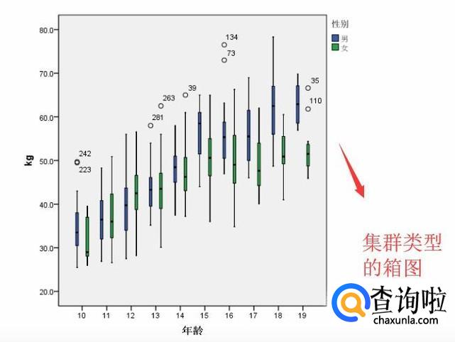 点击确定以后SPSS就为我们制作好了简单箱图,如下图所示
