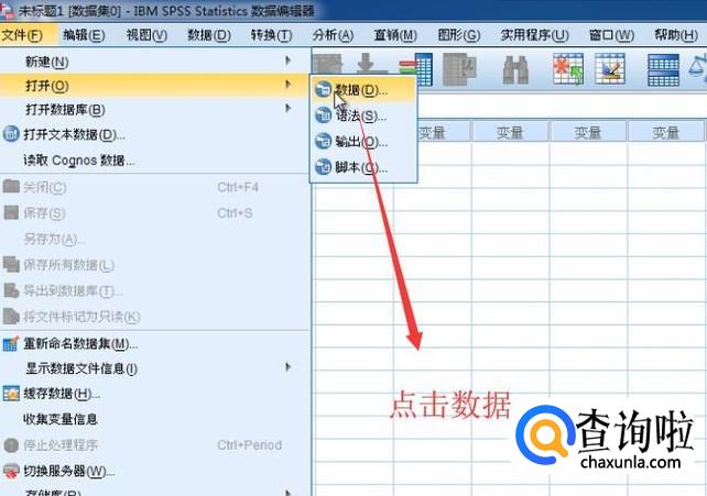 首先点击顶部的文件菜单,在下拉菜单中选择数据选项,如下图所示