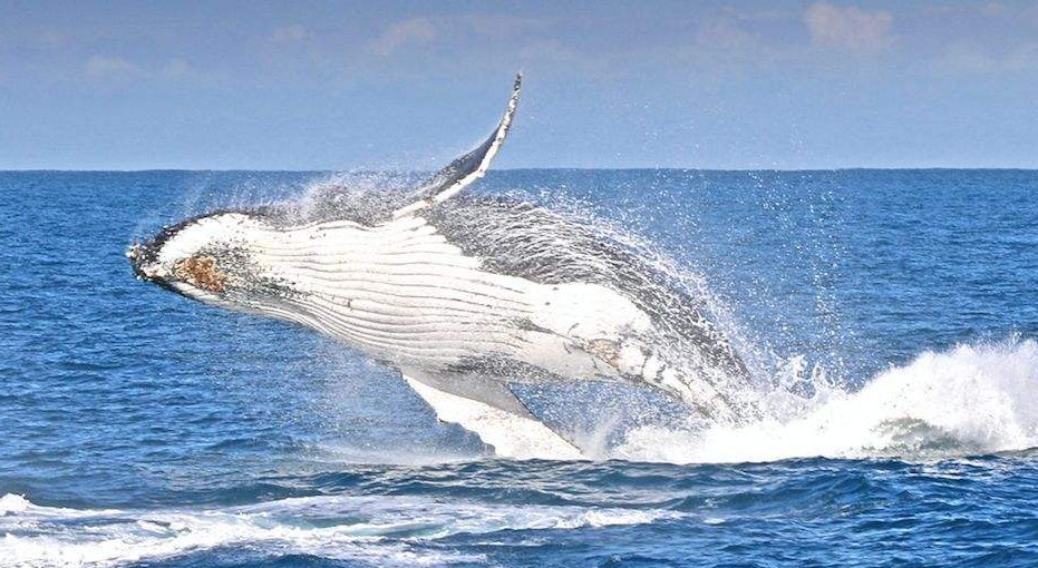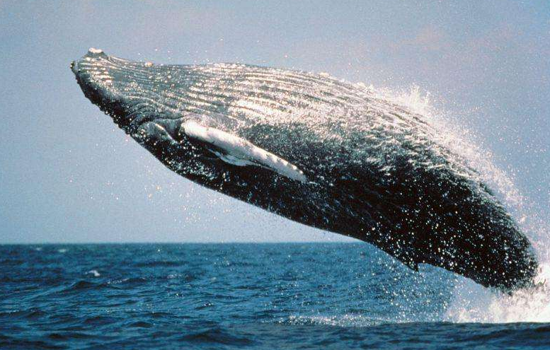 一头体重达30吨的座头鲸,能够跃出海面大约6米高,跳跃一次所用的力量可以举起500个人,是动物所能完成的最强有力的单项动作。