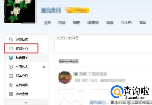 然后我们在界面的右边就可以看到特别关心我们的人了,小编目前为零人。