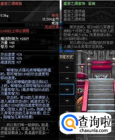 戒指以及项链首饰的话推荐瘟疫之源,单件装备增加100智力,当然需要点时间,如果有钱直接买未来之傲。