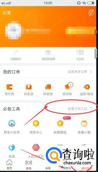 登陆【淘宝】,切换到【我的淘宝】选项卡,点击【查看全部工具】链接,如下图所示: