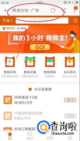 来到【阿里众包广场】页面,就可开始领取任务了,如下图所示: