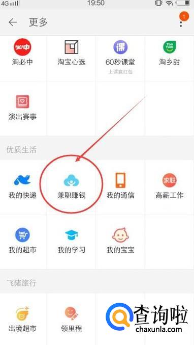 在【优质生活】下方点击【兼职赚钱】,如下图所示: