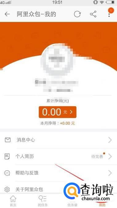 然后点击【我的】选项卡,就可以看到赚多少钱了,如下图所示: