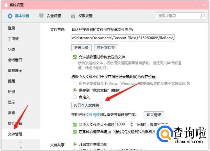 点击“文件管理”-“打开个人文件夹”