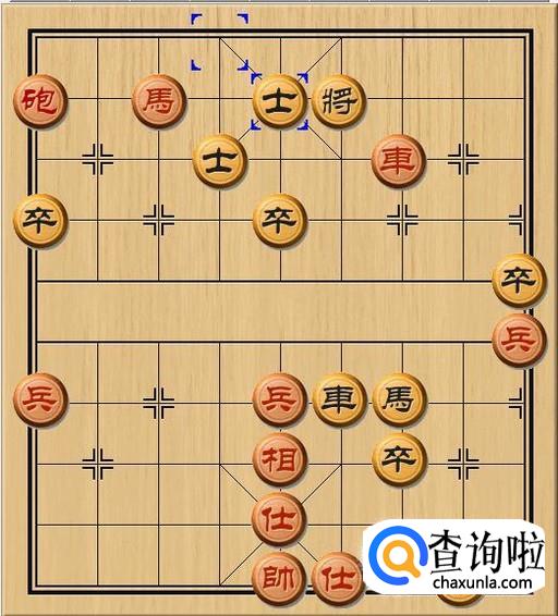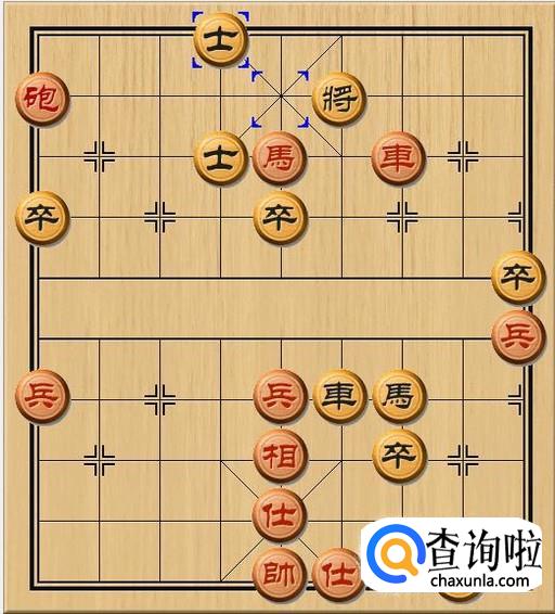 黑方老将不能后退,一旦后退红车将跟上来将军绝杀黑方老将。于是,黑方士4进5,黑方士上前一步,抵挡了红方炮的将军。之所以选择上士而不是退士,那是因为要避免红方“闷宫”杀黑方老将。如图所示。