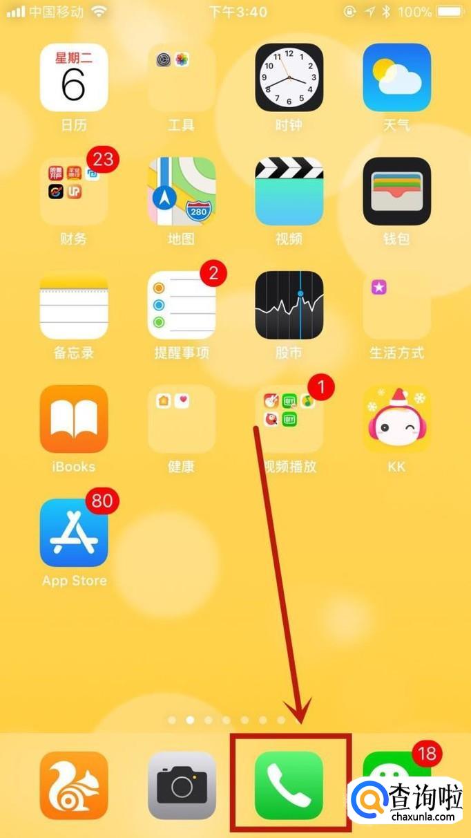 首先在我们的手机桌面上找到电话并点击它,如下图所示。