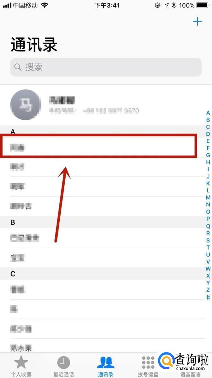 接着选择你要删除的联系人,如下图所示。