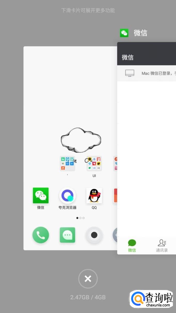 最直接的方法,就是上滑屏幕进入后台界面,直接点下面的X就能够关闭程序释放运存。