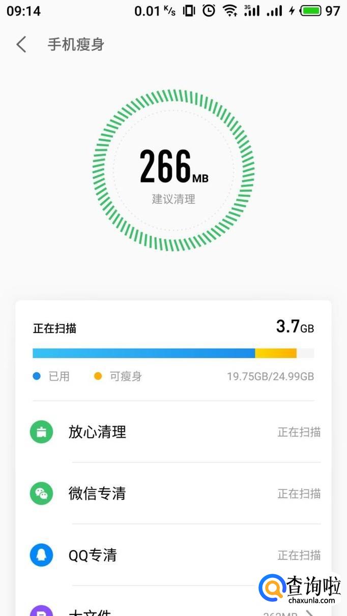 其次,在“手机瘦身”中,可删除释放手机文件,释放运存。