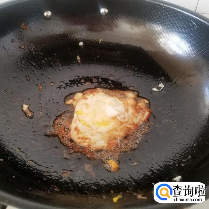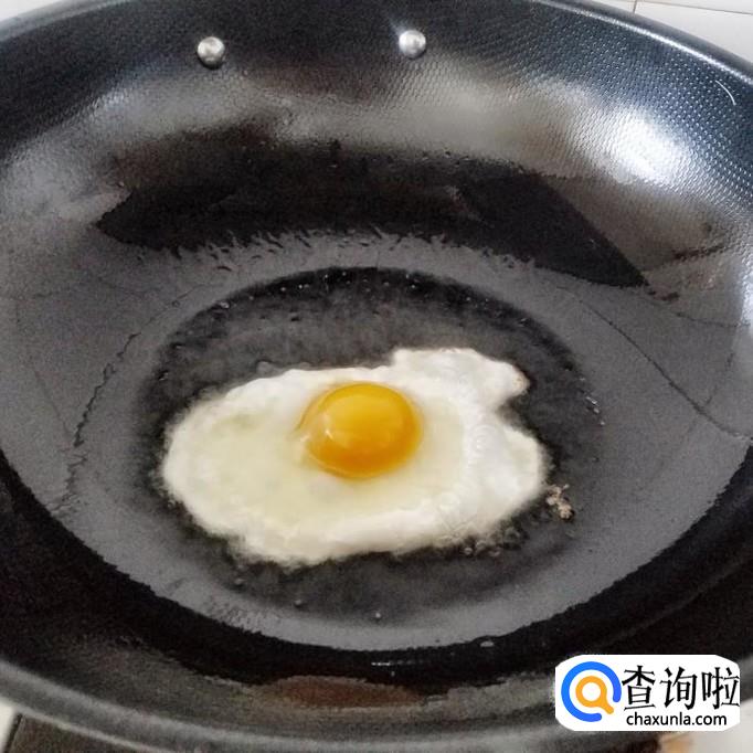 油八分开时,将鸡蛋磕入锅中,中小火煎制。