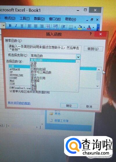 最后,也可以在选择函数类别中找不同的函数项,这就是Excel中的函数了。