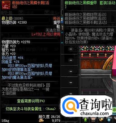 断肠绝伤传说套装也是比较适合圣武枪魂的,其效果和瘟疫之源差不多,能够增加所有属性强化,还能够减少伤害。