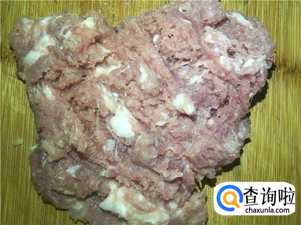 半肥瘦去掉猪皮,然后剁碎,剁得越碎越好。