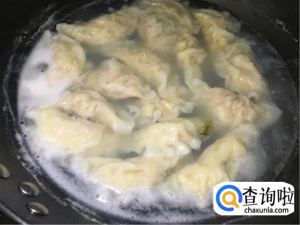 锅里翻入少许姜片,烧开一锅水,水沸腾后,把包好的饺子一个个放入锅中,搅拌一下,以免粘锅。大火煮20分钟,即可吃上香喷喷的瘦肉粉丝饺子了。