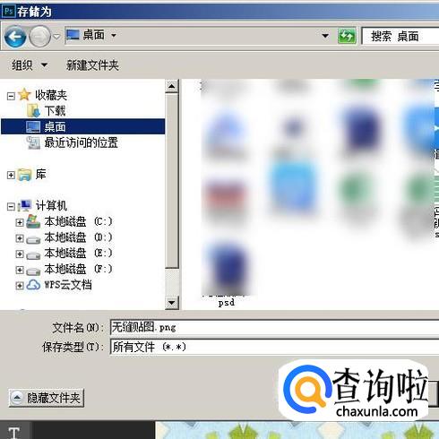 弹出对话框,设置保存地址和文件名。比如,设置文件名为“无缝贴图”;保存在电脑桌面。