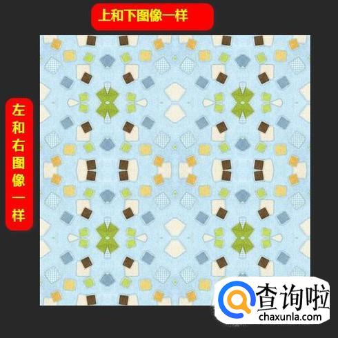 到这里,无缝贴图终于制作好了。我们看画布上的图。大家有发现什么吗?大家看图片左和右,上和下。左和右的图像是一样的。上和下的图像同样是一样的。这就是无缝贴图的奥妙所在。
