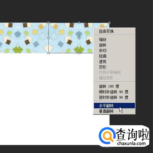 重复步骤9的操作把刚才复制的图片水平翻转过来:按下CTRL+T,调出自由变换框,鼠标放在变换框上,再右击,弹出下拉菜单再点:水平翻转