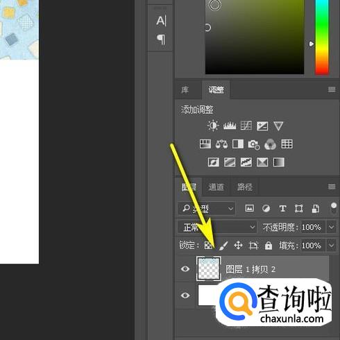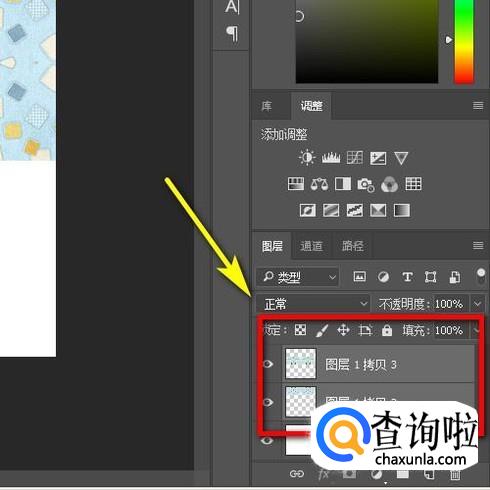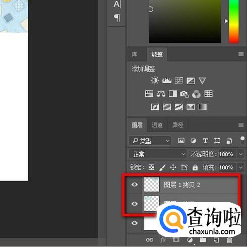 接着,鼠标再移到图层面板这里,把这两个图层全选中。如图所示。