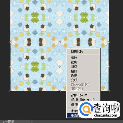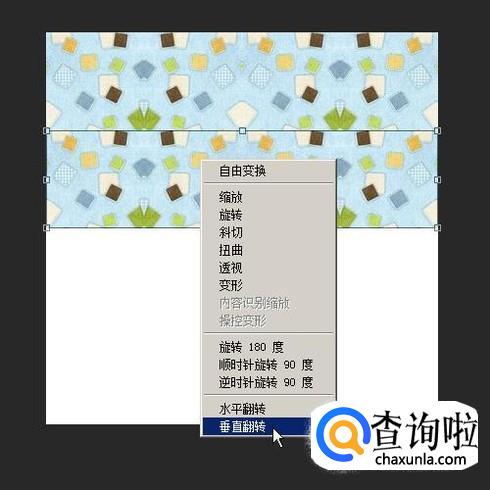 同样,按键盘的CTRL+T,调出自由变换框,鼠标放在变换框上,再右击,弹出下拉菜单再点:垂直翻转