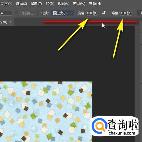 这时,右边的宽度和高宽这两项即激活;我们在这两项中分别输入100像素,如图所示。