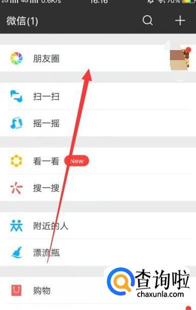 进入之后,点击“朋友圈”,进入下一页面,如图所示。