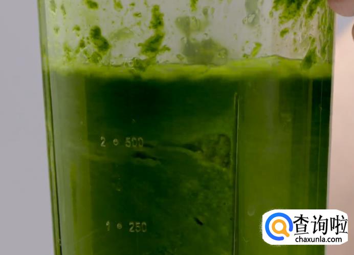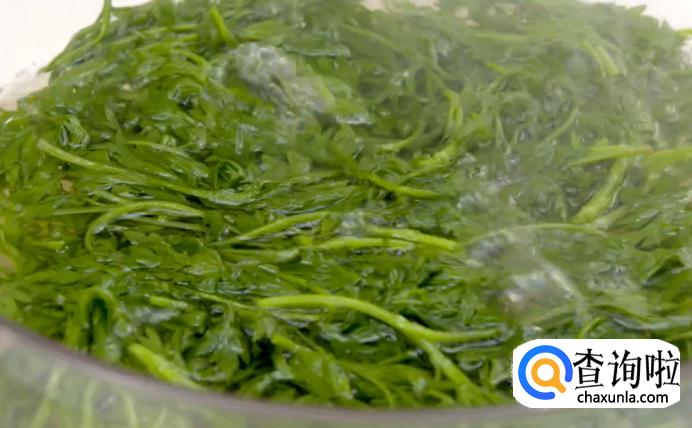 接着把焯水之后的艾草放入搅拌机,加入热水和白糖搅打成艾草汁。