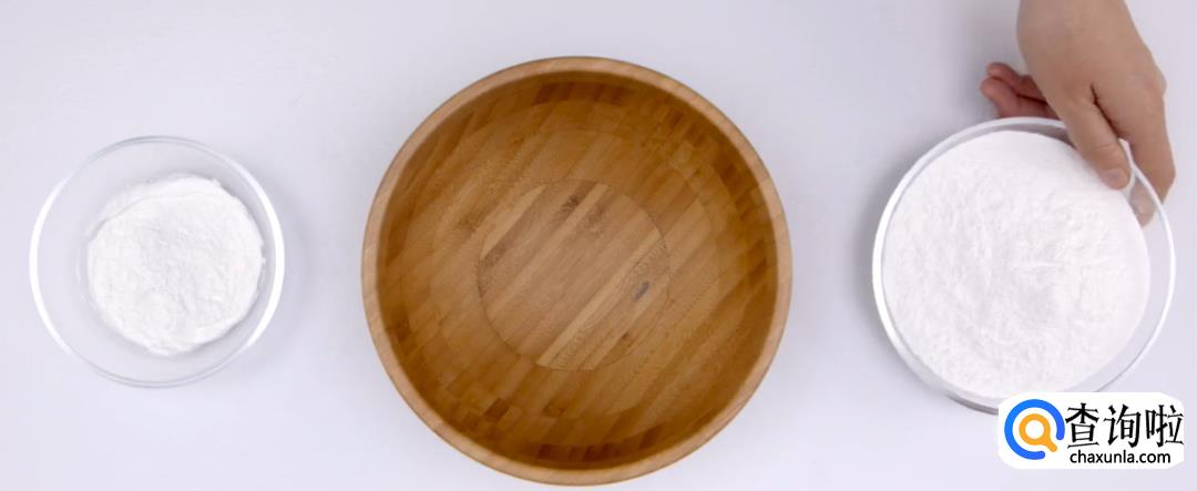 之后取一个碗,将糯米粉和澄粉按照4:1的比例混合起来