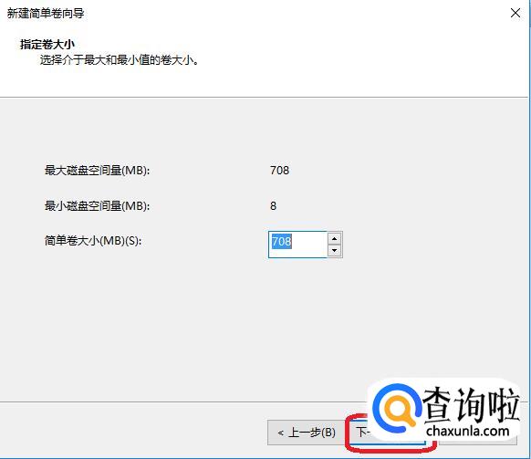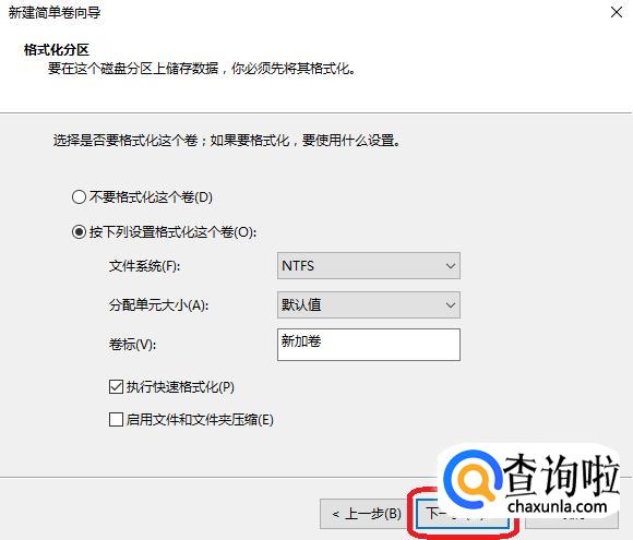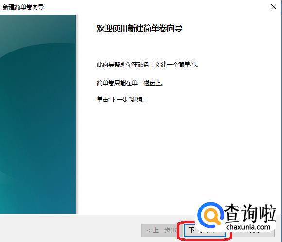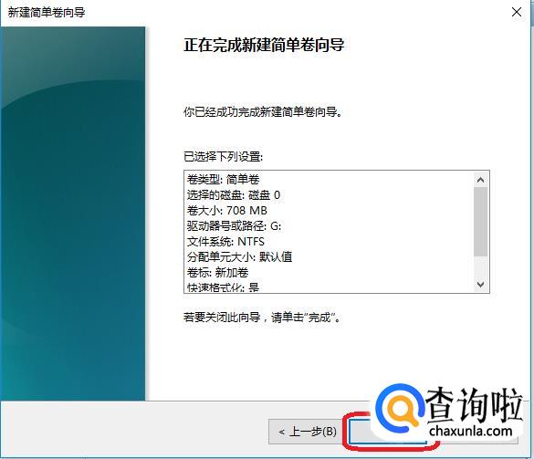 后面新建简单卷向导,都默认点击“下一步”即可,到最后一个页面点击“完成”。
