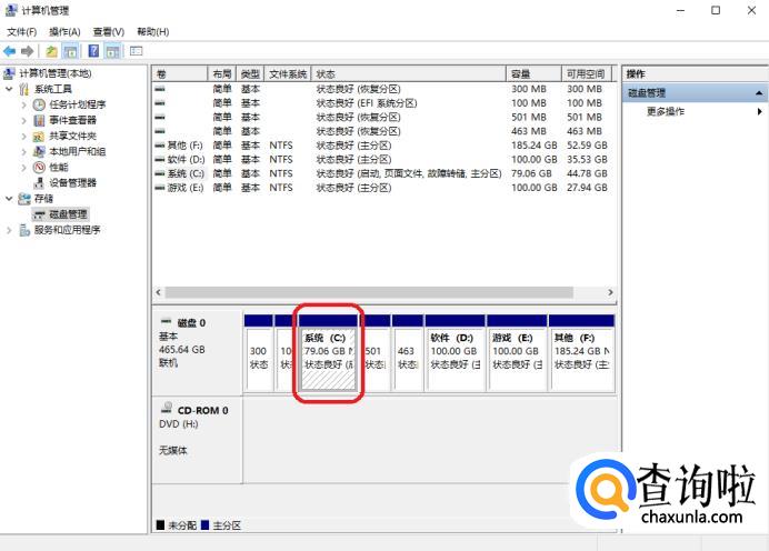 现在可以看到电脑的分区情况,新买的笔记本电脑只有C盘一个分区,右击C盘。