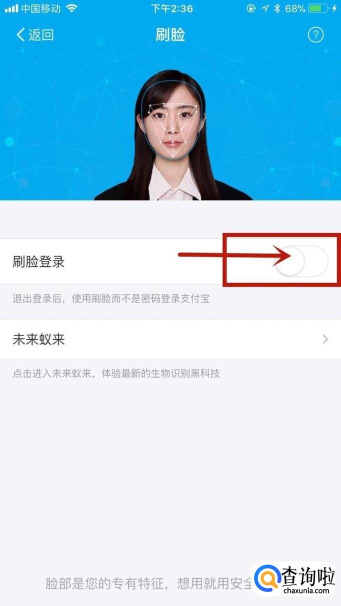通过以上操作,我们就成功开启了支付宝的刷脸功能了。如果大家想要关闭该功能,只要关闭刷脸开关就可以了。