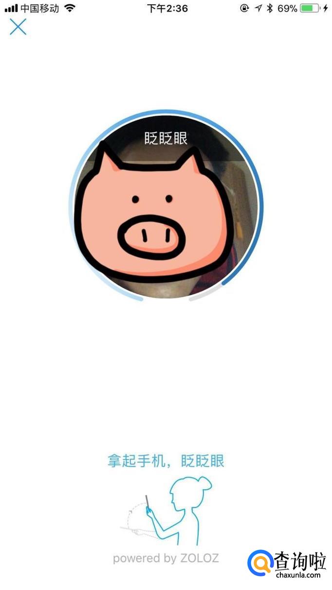 接着按照提示完成刷脸动作,如下图所示。