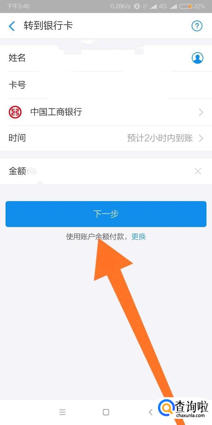 接着输入收款人的姓名、银行卡卡和转账金额,确认无误后,点击“下一步”。