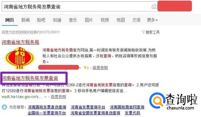 我们在搜索引擎中输入河南省地方税务局发票查询,弹出的界面,我们点击河南省地方税务局发票查询这个网站;
