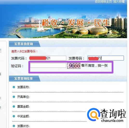 然后我们输入发票代码和发票号码,然后输入验证码;