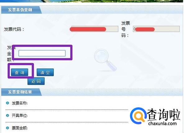 弹出的界面,我们输入发票金额并点击查询即可,就可以查出这张发票是否是真的了。