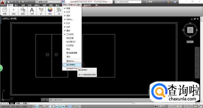 如图所示,点击自定义快速访问工具栏向下箭头。弹出下拉列表选项,选择"显示菜单栏"项。