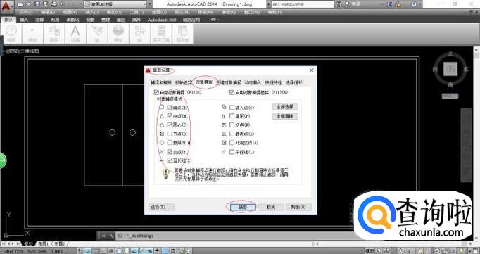 如图所示,完成启用对象捕捉绘图辅助功能的操作。本例到此结束,希望对大家能有所帮助。