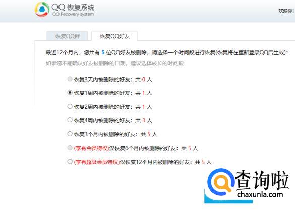进入这个页面,在根据你自己想恢复好友的要求进行勾选,提交“申请恢复”就可以了。