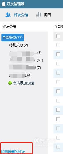 点击好友管理器之后,会出现下图页面,找到“找回被删除的好友”。