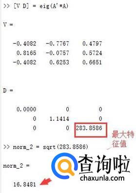 对于实矩阵,矩阵A的2范数定义为:A的转置与A乘积的最大特征值开平方根。对于以上矩阵,直接调用函数可以求得2范数为16.8481,如上图所示。使用定义计算的过程如下图。说明我们的计算是正确的。
