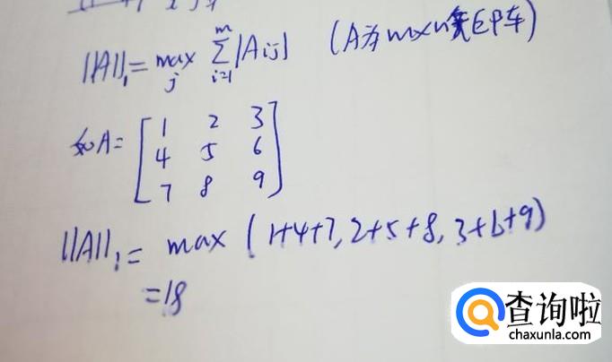 对于复矩阵,将转置替换为共轭转置,其他步骤与上一步相同。矩阵A的∞范数定义为先沿着行方向取绝对值之和,然后取最大值(与1范数类似)。使用matlab计算如上图,使用定义验证如下图。