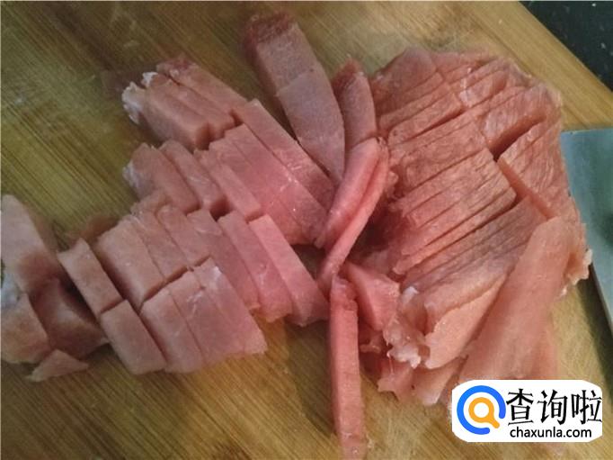 肉洗下,切成片状,取50g就够了。