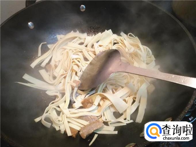 千张混入后,不要炒太久,因为千张本身就熟的。