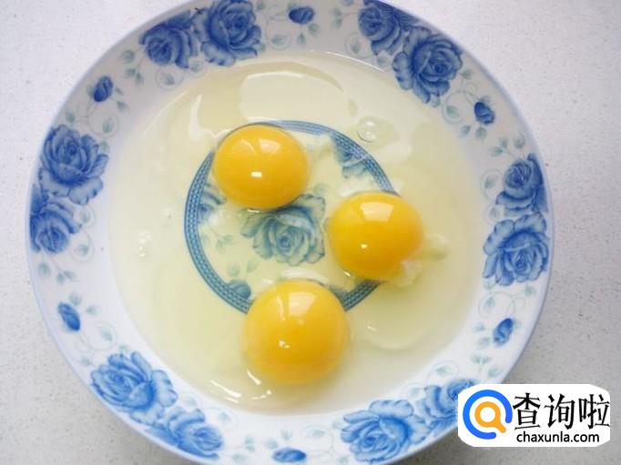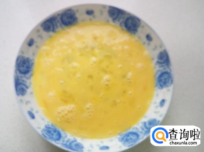 鸡蛋打入盘中,搅拌成鸡蛋液。