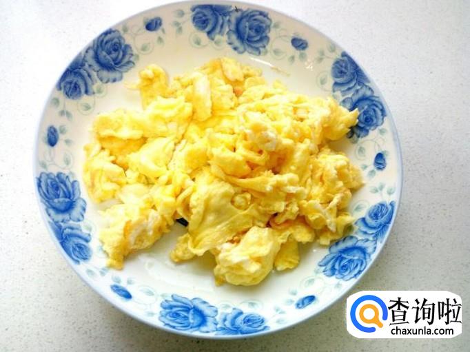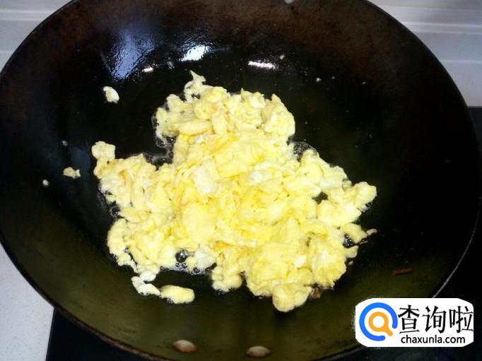 用锅把鸡蛋先炒出来,炒至七分熟即可,盛出备用。