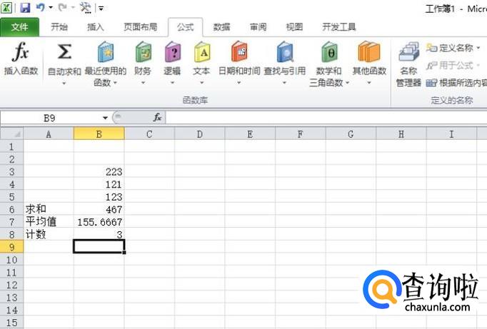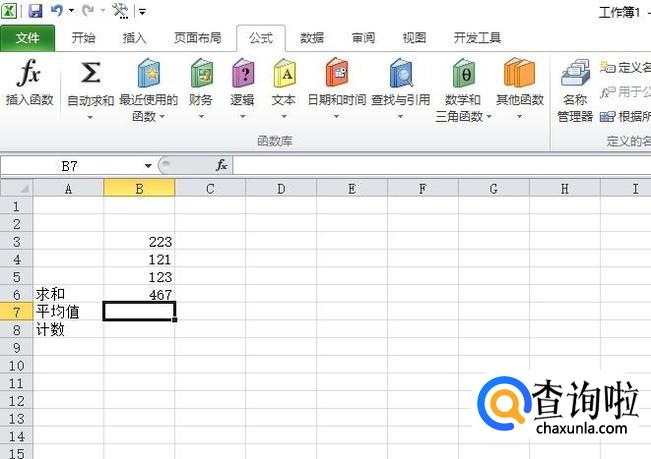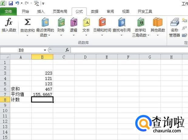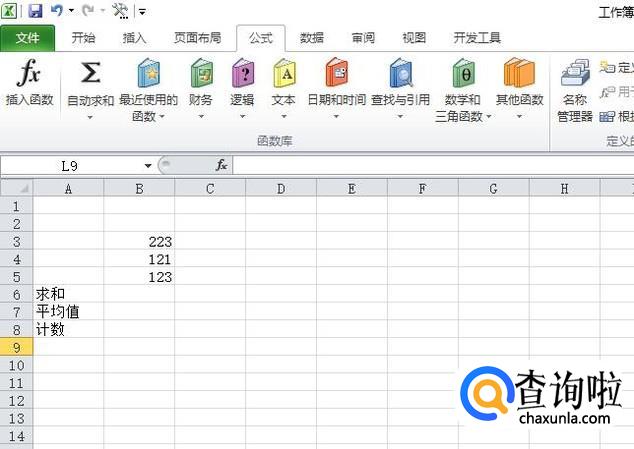 首先,我们打开我们电脑上面的excel,然后我们在里面输入一些数据,一般常用公式为:求和、平均值、计数;